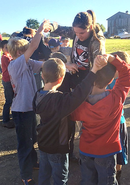 Members of Blue Mt. 4-H livestock participate in the “Human Knot” activity.